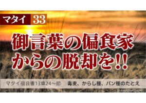 33_マタイ福音書_13章24~43節_毒麦のたとえ_250907 2025/09/12 この記事を書いている人 - WRITER - sikaoichurch 2016年9月に、十勝鹿追町オープンした小さな教会です。,Voluntarily(自発的に),Open(開放的に),Logically(論理的に),聖書を学んでいます。史上類をみない大ベストセラー、聖書について、一緒に学んでみませんか? 執筆者は、牧師:三浦亮平です。 この記事を書いている人 - WRITER - sikaoichurch 2016年9月に、十勝鹿追町オープンした小さな教会です。,Voluntarily(自発的に),Open(開放的に),Logically(論理的に),聖書を学んでいます。史上類をみない大ベストセラー、聖書について、一緒に学んでみませんか? 執筆者は、牧師:三浦亮平です。 関連記事 - Related Posts - はじめまして 聖徒伝137 預言者3 ヨナ書1~2章 追跡者なる神 復活 ヨナのしるし 聖徒伝36 モーセ⑩ 神の栄光は今どこに 幕屋の完成・栄光の顕現 出エジプト記35~40章 マタイの福音書4章12~25節 宣教の開始 弟子の召命 最新記事 - New Posts - マタイ福音書16章13~28節 ペテロの信仰告白 【子どもだってバイブルスタディ】「いつもあなたがたとともにいます」 聖徒伝250 エレミヤ書 29章 バビロンへの手紙 ヘブル人への手紙1章 御子の本質 - Comments - コメントをキャンセルメールアドレスが公開されることはありません。 * が付いている欄は必須項目ですコメント 名前 * メール * サイト 次回のコメントで使用するためブラウザーに自分の名前、メールアドレス、サイトを保存する。 email confirm* post date* 日本語が含まれない投稿は無視されますのでご注意ください。(スパム対策)