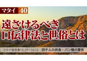 40_マタイ福音書_15章29~39節_4千人の供食_251214 2025/12/19 この記事を書いている人 - WRITER - sikaoichurch 2016年9月に、十勝鹿追町オープンした小さな教会です。,Voluntarily(自発的に),Open(開放的に),Logically(論理的に),聖書を学んでいます。史上類をみない大ベストセラー、聖書について、一緒に学んでみませんか? 執筆者は、牧師:三浦亮平です。 この記事を書いている人 - WRITER - sikaoichurch 2016年9月に、十勝鹿追町オープンした小さな教会です。,Voluntarily(自発的に),Open(開放的に),Logically(論理的に),聖書を学んでいます。史上類をみない大ベストセラー、聖書について、一緒に学んでみませんか? 執筆者は、牧師:三浦亮平です。 関連記事 - Related Posts - 【お知らせ】8/20(水)バイブルスタディおやすみのお知らせ 聖徒伝56 申命記31~32章 「天よ、耳を傾けよ」 モーセの歌 コロナ渦で、これからの教会形成を考える Q:三位一体って? 難解? 不可解? 非理性的? 最新記事 - New Posts - マタイ福音書17章1~13節 イエスの山上での変容 マタイ福音書16章13~28節 ペテロの信仰告白 【子どもだってバイブルスタディ】「いつもあなたがたとともにいます」 聖徒伝250 エレミヤ書 29章 バビロンへの手紙 - Comments - コメントをキャンセルメールアドレスが公開されることはありません。 * が付いている欄は必須項目ですコメント 名前 * メール * サイト 次回のコメントで使用するためブラウザーに自分の名前、メールアドレス、サイトを保存する。 email confirm* post date* 日本語が含まれない投稿は無視されますのでご注意ください。(スパム対策)